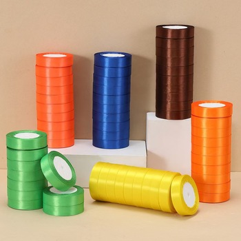 Toptan 15mm çift yüz saten kurdele rulo düz renk 100% Polyester Durable-10rolls/paket çin'de yapılan